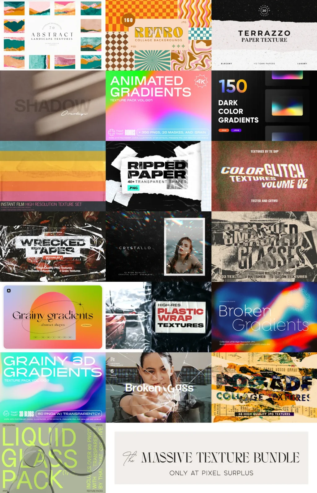 デザイン素材販売サイトのPixel Surplusでは現在デザイン素材バンドル「The Massive Texture Bundle」が19ドルで販売中。複数の商用プロジェクトに利用できるテクスチャ素材総額592ドル(92,442円)分を収録したお得なコレクションです。